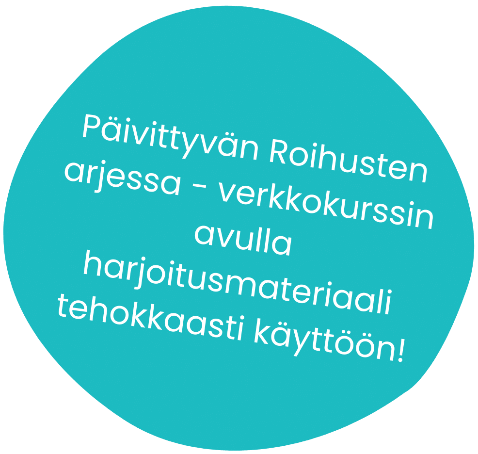 Kun ostat Roihusten arjessa -materiaalin, tulee sinun ostaa myös Roihusten arjessa -verkkokurssin lisenssi vähintään 1 vuodeksi. Yhdellä lisenssillä kurssi on vuoden ajan toimipisteen koko henkilöstön käytettävissä!