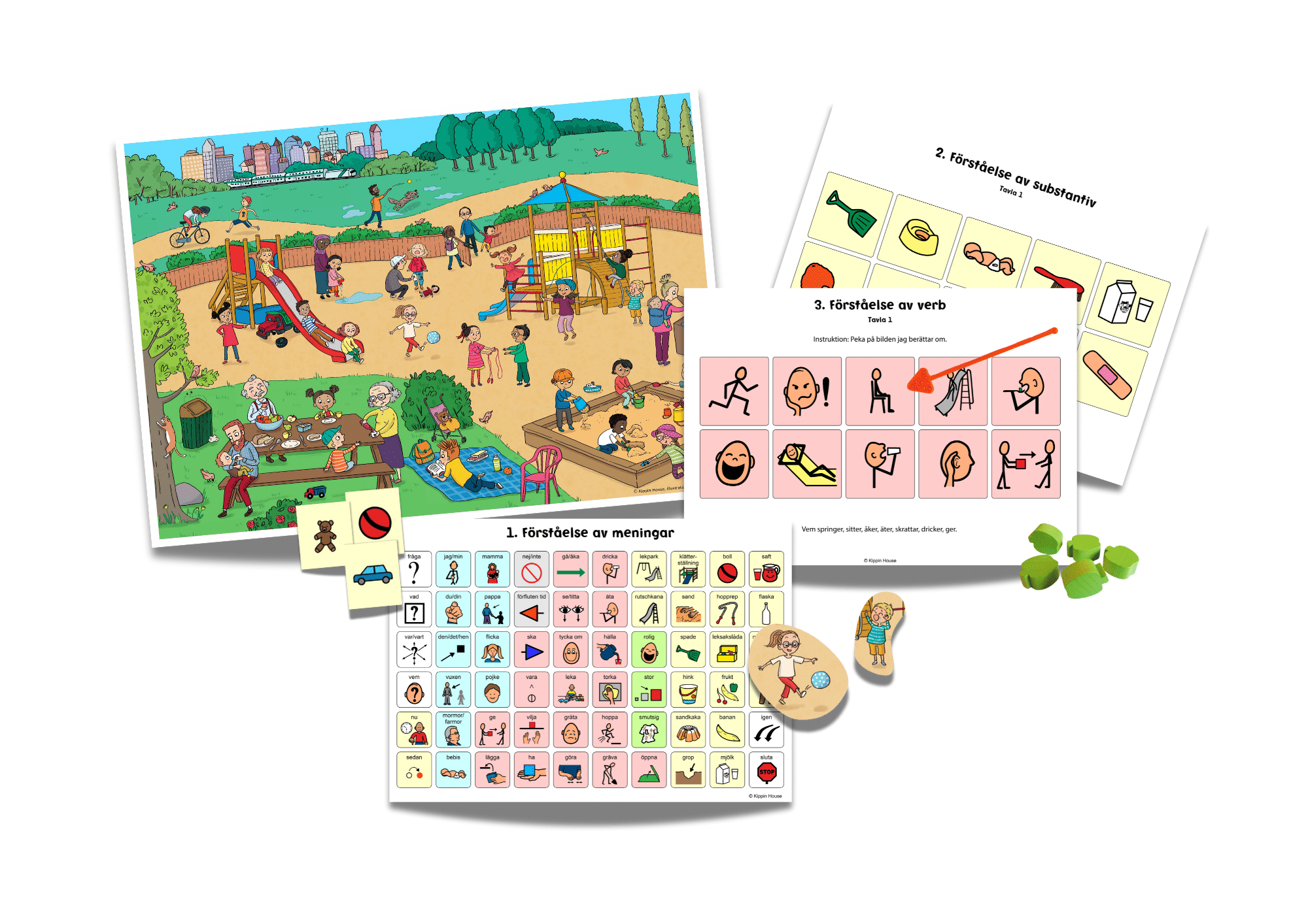 Materialet kan användas för att kartlägga barnets språkliga färdigheter och senare följa upp hur de har utvecklats efter språkligt stöd, till exempel i språkstunder med undervisningsmaterialet Familjen Kippin. Samtidigt kan materialet användas helt självständigt och fungerar även utan de övriga produkterna i Familjen Kippin-serien.